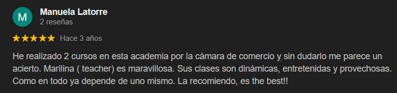 Y ahora, es la dueña de una academia de inglés.